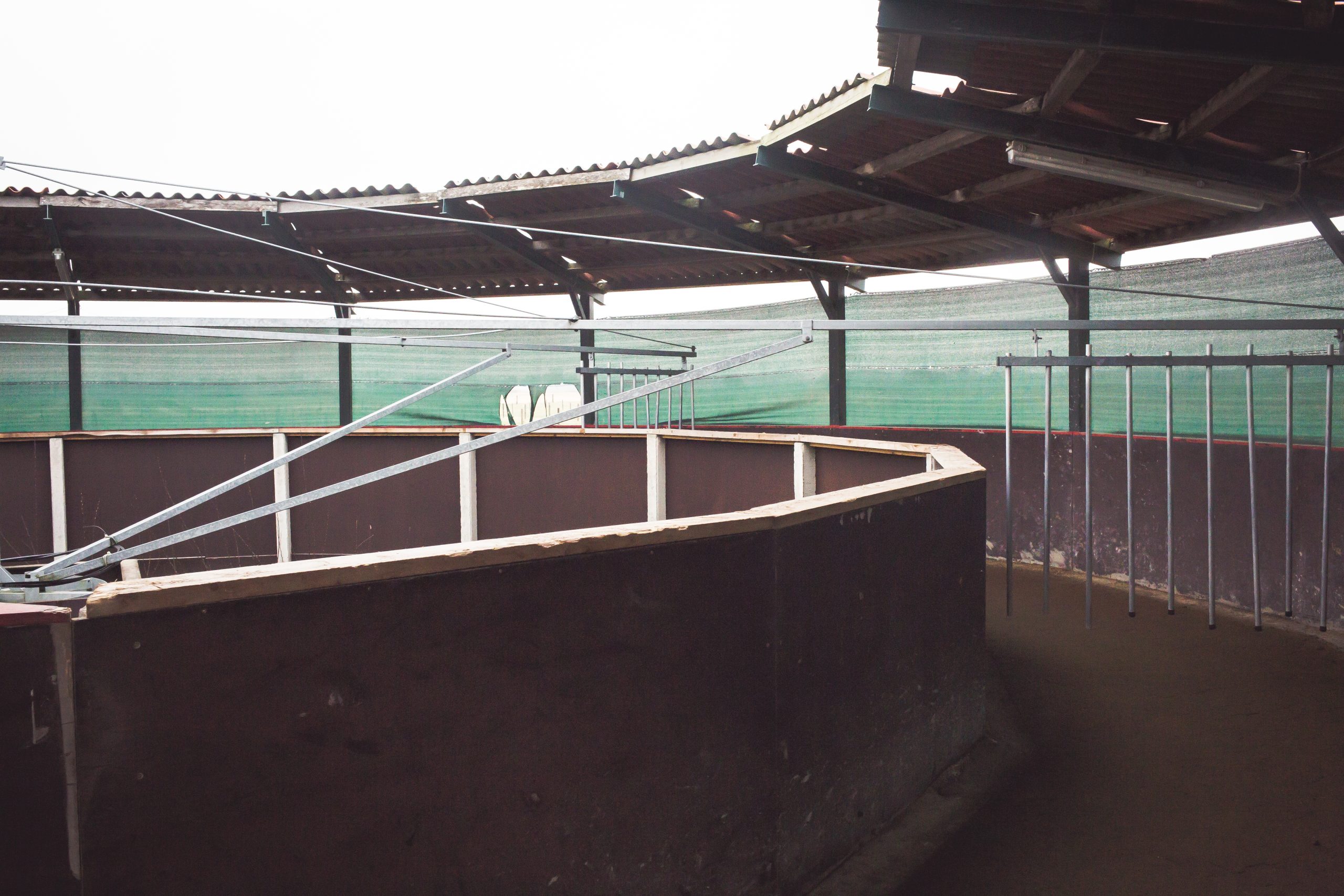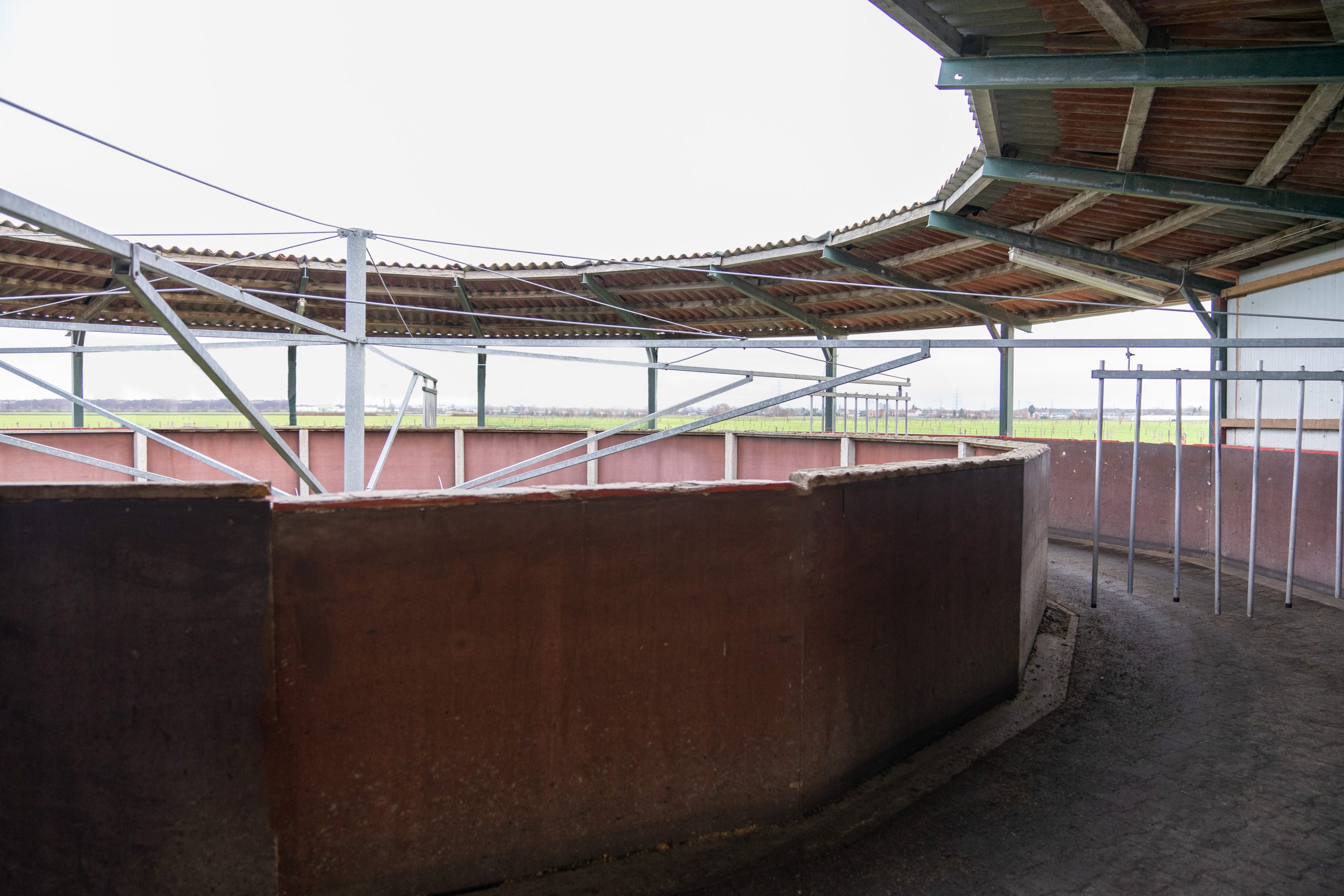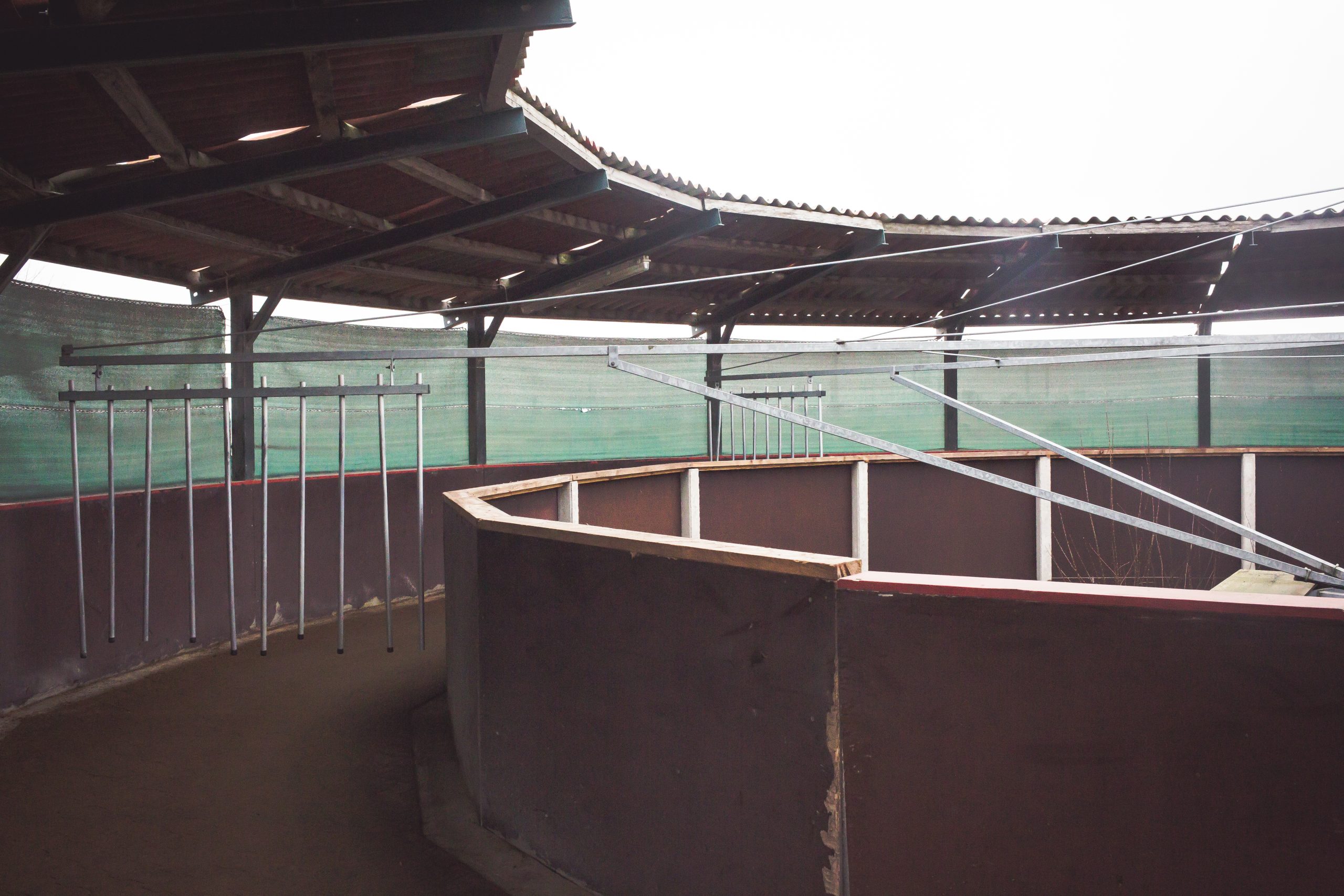 Unsere Führanlage ist ein wichtiger Bestandteil unseres Hofes. Sie dient als ergänzendes Trainingsinstrument für unsere Pferde und ermöglicht es ihnen, zusätzliche Bewegung zu bekommen. Diese Anlagen bestehen aus einer runden Laufspur, auf der die Pferde angebunden oder frei laufen können. Hier ist Platz für 6 Pferde.